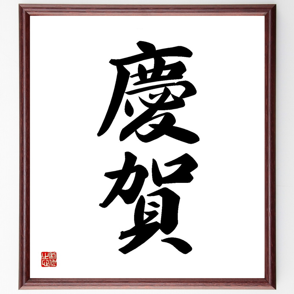二字熟語「慶賀」手書き書道色紙額/受注後の毛筆直筆