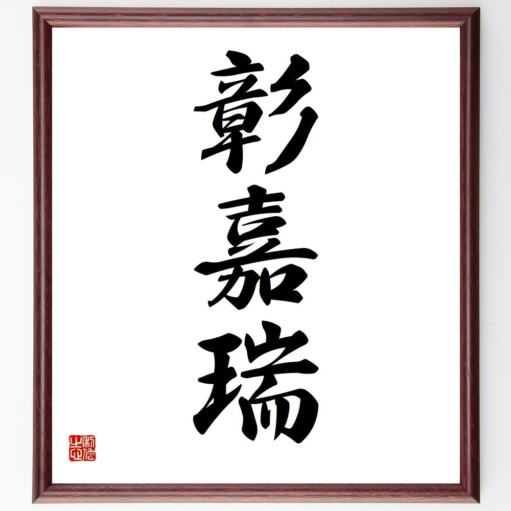 三字熟語「彰嘉瑞」手書き書道色紙額/受注後の毛筆直筆