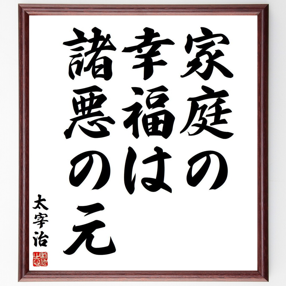 太宰治の名言「家庭の幸福は、諸悪の元」手書き書道色紙額/受注後の毛筆直筆