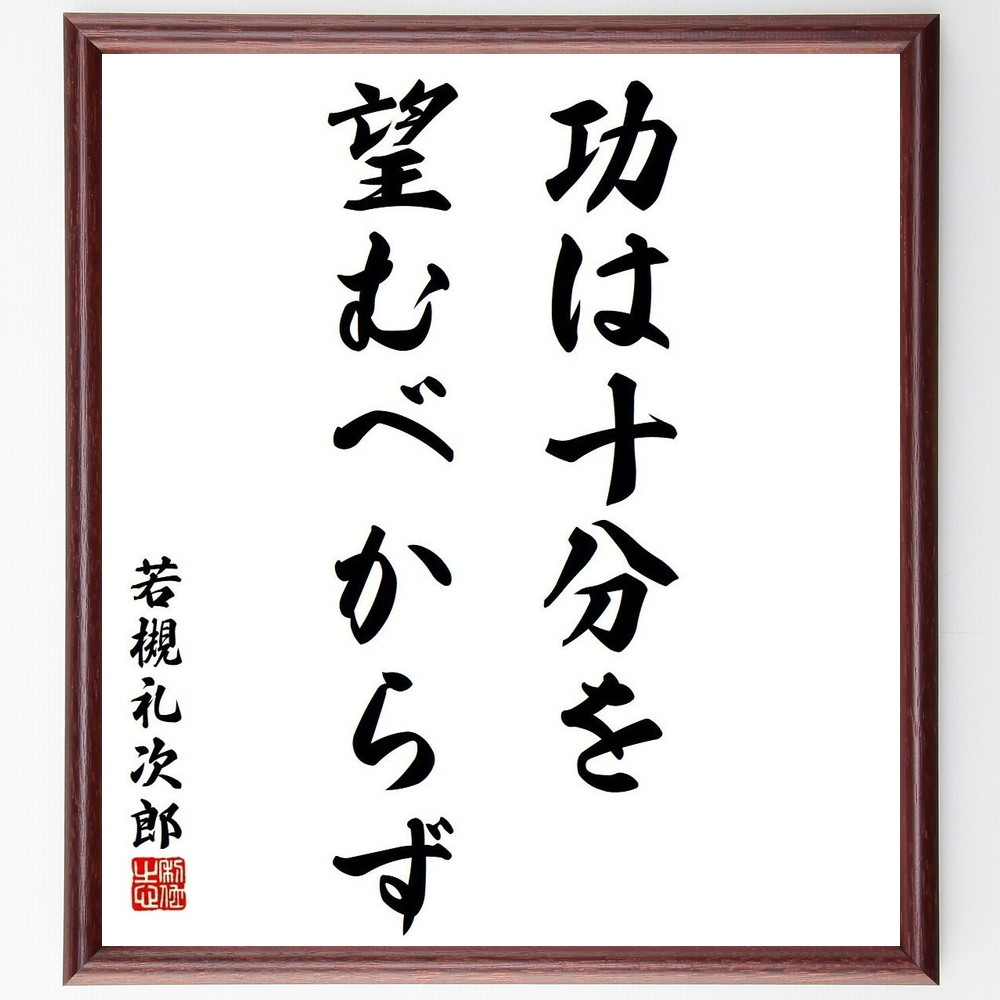 若槻礼次郎の名言「功は十分を、望むべからず」手書き書道色紙額/受注後の毛筆直筆