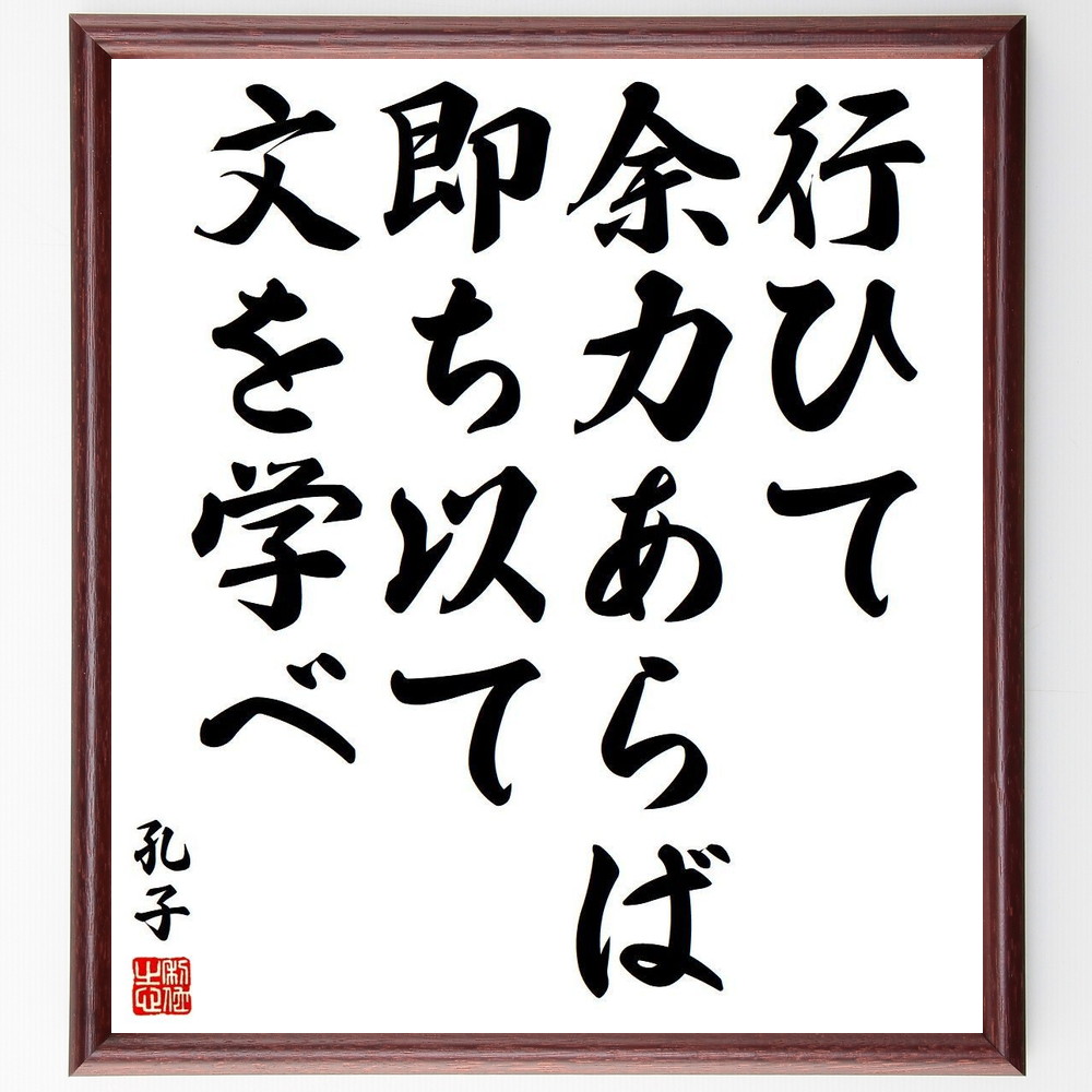 孔子の名言「行ひて余力あらば即ち以て文を学べ」手書き書道色紙額/受注後の毛筆直筆