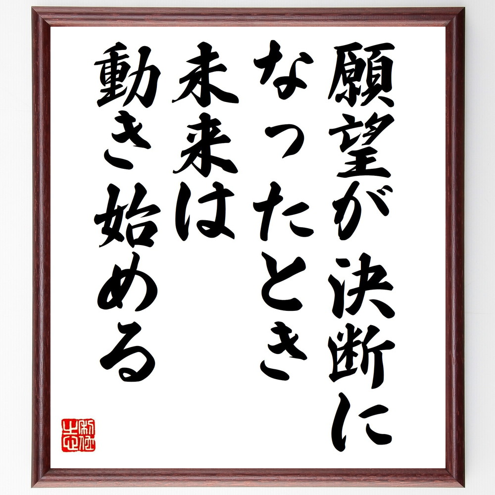 名言「願望が決断になったとき、未来は動き始める」手書き書道色紙額/受注後の毛筆直筆