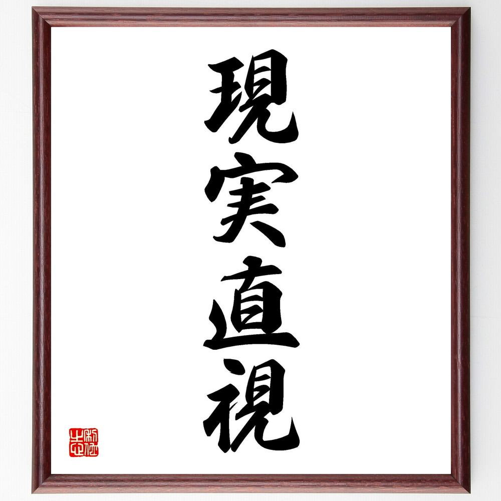 四字熟語「現実直視」手書き書道色紙額/受注後の毛筆直筆