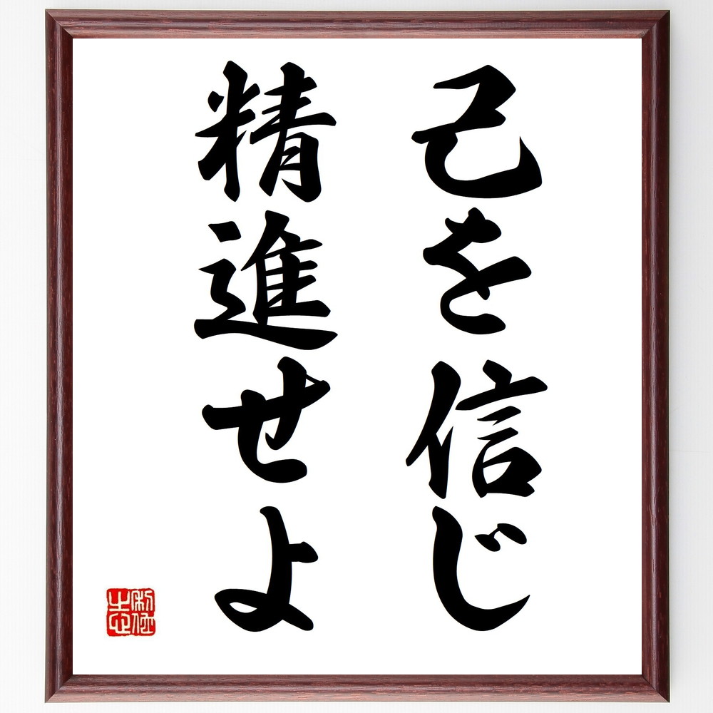 名言「己を信じ精進せよ」手書き書道色紙額/受注後の毛筆直筆