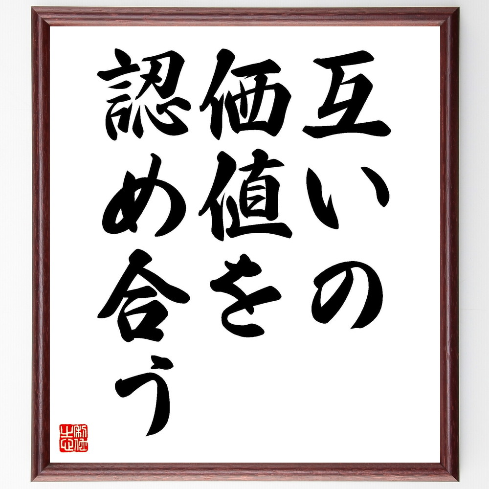 名言「互いの価値を認め合う」手書き書道色紙額/受注後の毛筆直筆
