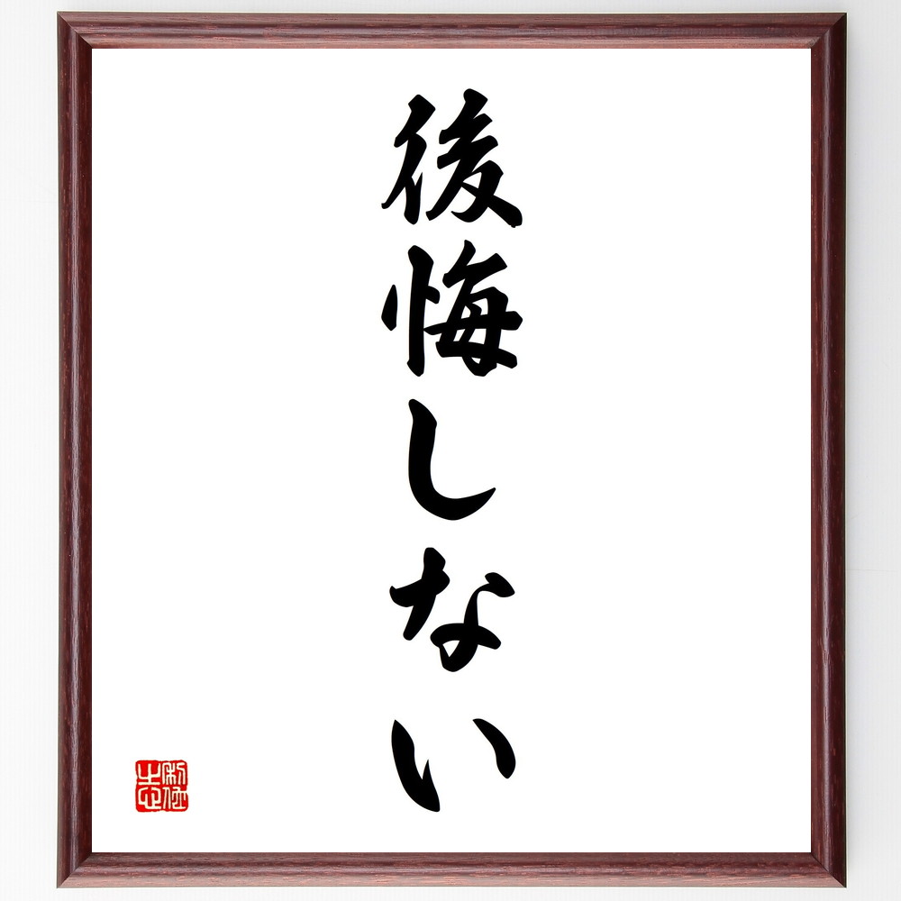 名言「後悔しない」手書き書道色紙額/受注後の毛筆直筆