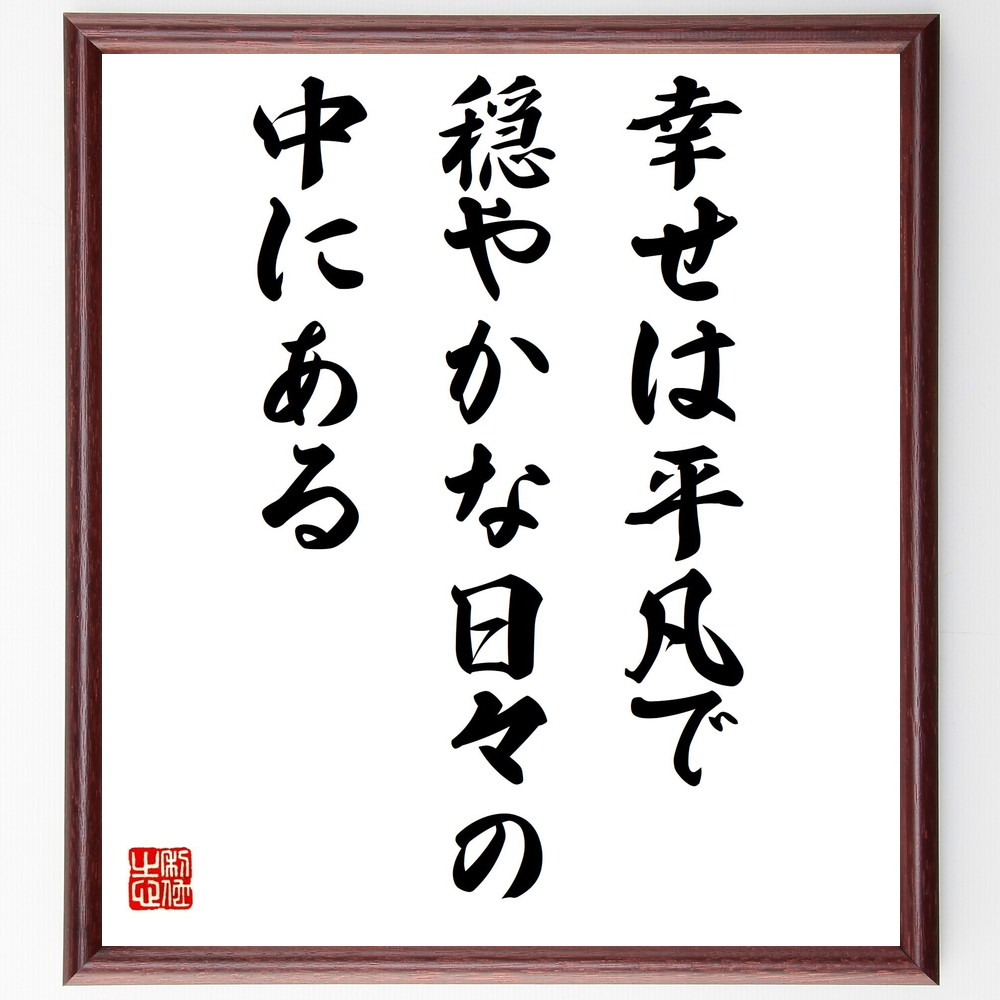 名言「幸せは平凡で、穏やかな日々の中にある」手書き書道色紙額/受注後の毛筆直筆