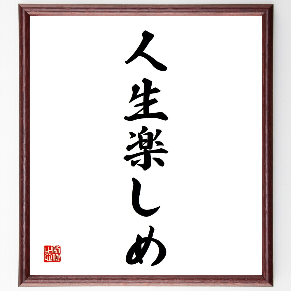 名言「人生楽しめ」手書き書道色紙額/受注後の毛筆直筆
