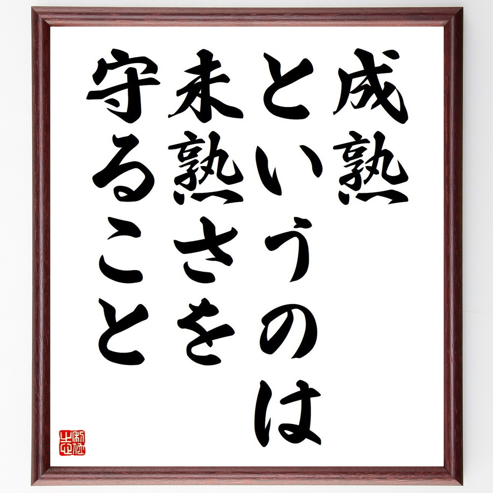 名言「成熟というのは、未熟さを守ること」手書き書道色紙額/受注後の毛筆直筆