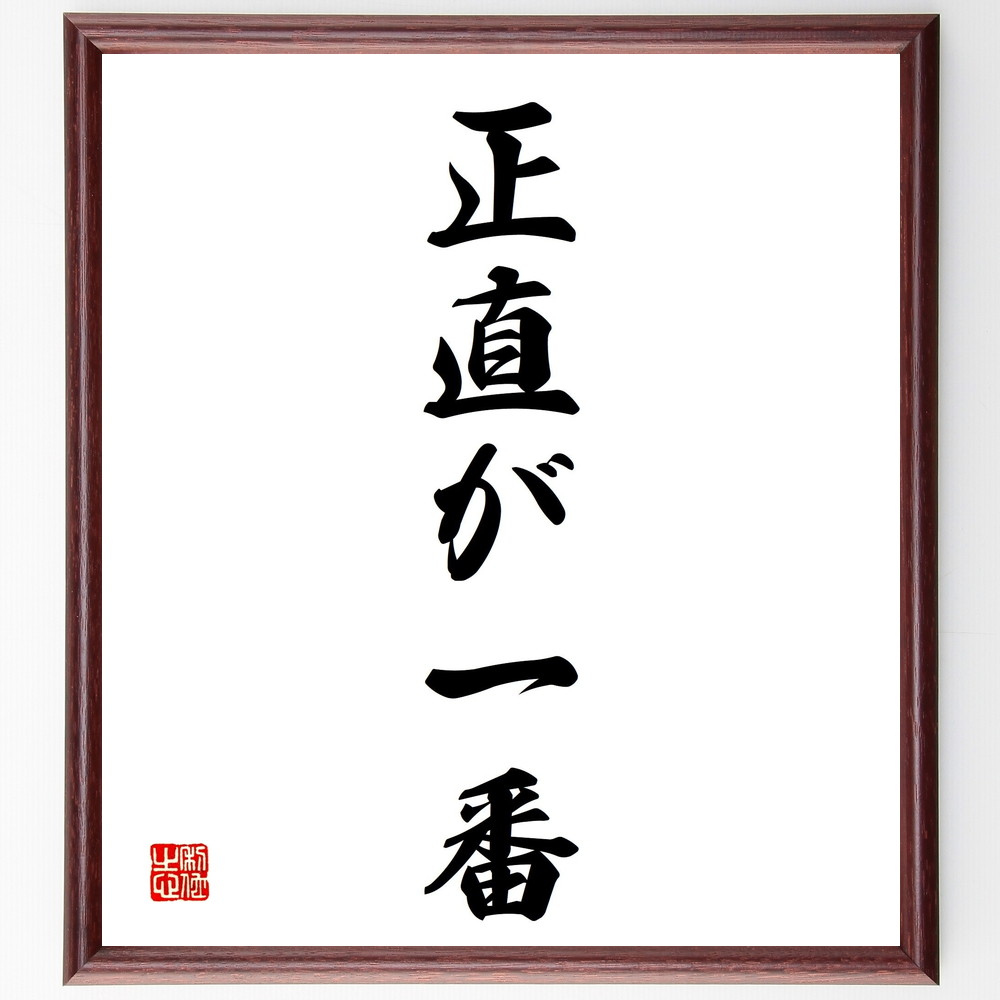 名言「正直が一番」手書き書道色紙額/受注後の毛筆直筆