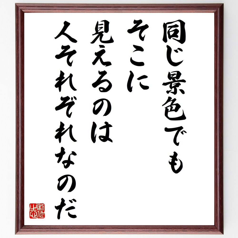 名言「同じ景色でも、そこに見えるのは人それぞれなのだ」手書き書道色紙額/受注後の毛筆直筆
