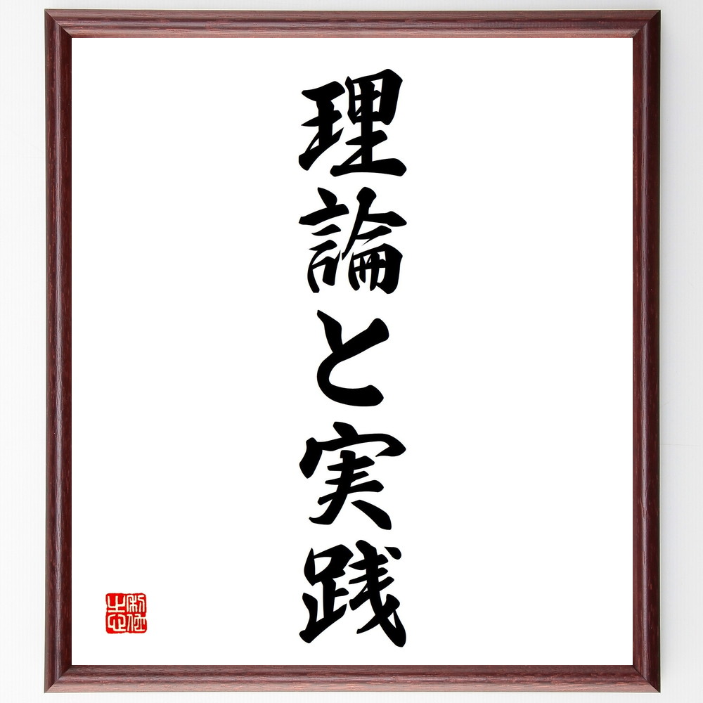 名言「理論と実践」手書き書道色紙額/受注後の毛筆直筆