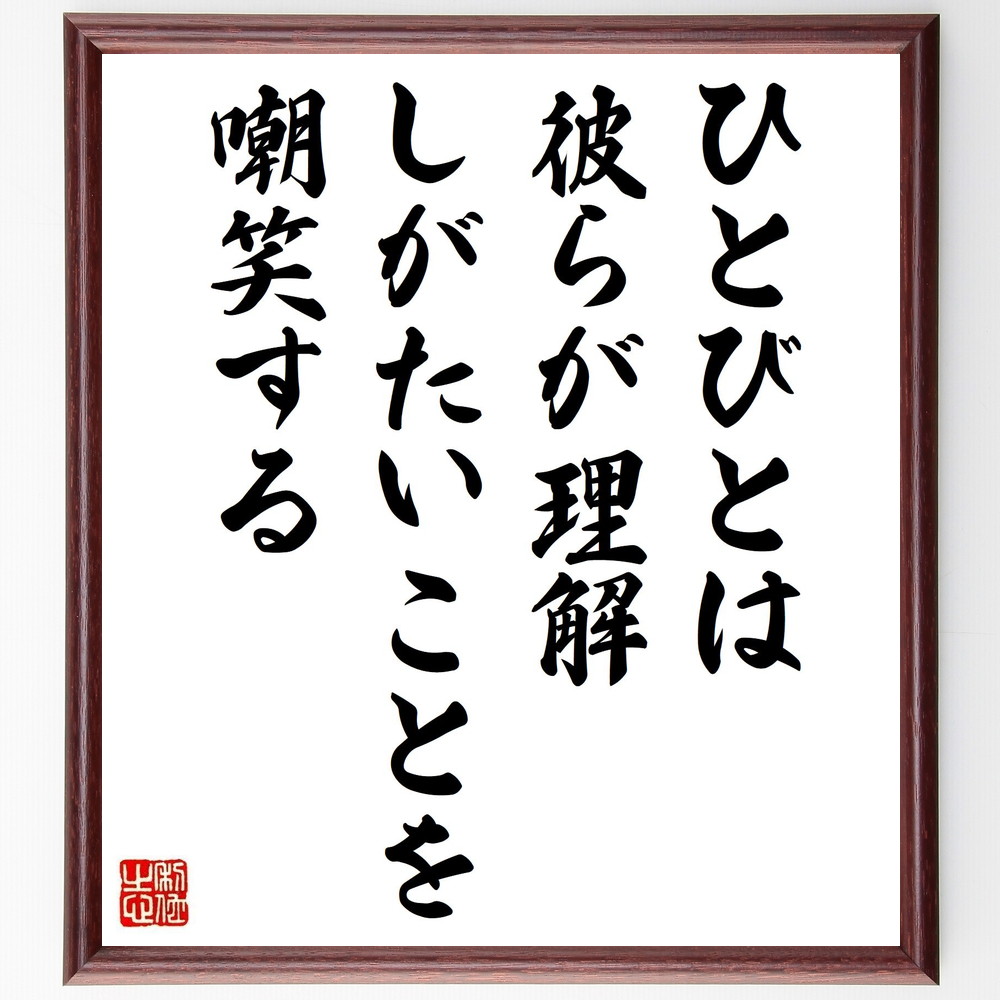 アーサー・コナン・ドイルの名言「ひとびとは、彼らが理解しがたいことを嘲笑する」を、千言堂の専属書道家が気持ちを込めて手書き直筆いたします。この言葉(ひとこと)は名言集や本・書籍などで紹介されることも多く、座右の銘にされている方も多いようです。ぜひ、ご自宅の玄関、リビング、部屋、書斎、またビジネスを営む会社のオフィスや店舗の事務所、応接室などにお飾りください。大切な方への贈り物・プレゼントにもおすすめです。一点一点が直筆のため、パソコン制作のような完璧さはございませんが、手書きの良さを感じていただけます。当店では挑戦、努力、成功、幸福、感謝、成長、家族、仕事、自己啓発など様々なテーマから人生の糧となる名言、四字熟語、諺、故事成語、格言を厳選、毛筆で直筆、お届けしています。