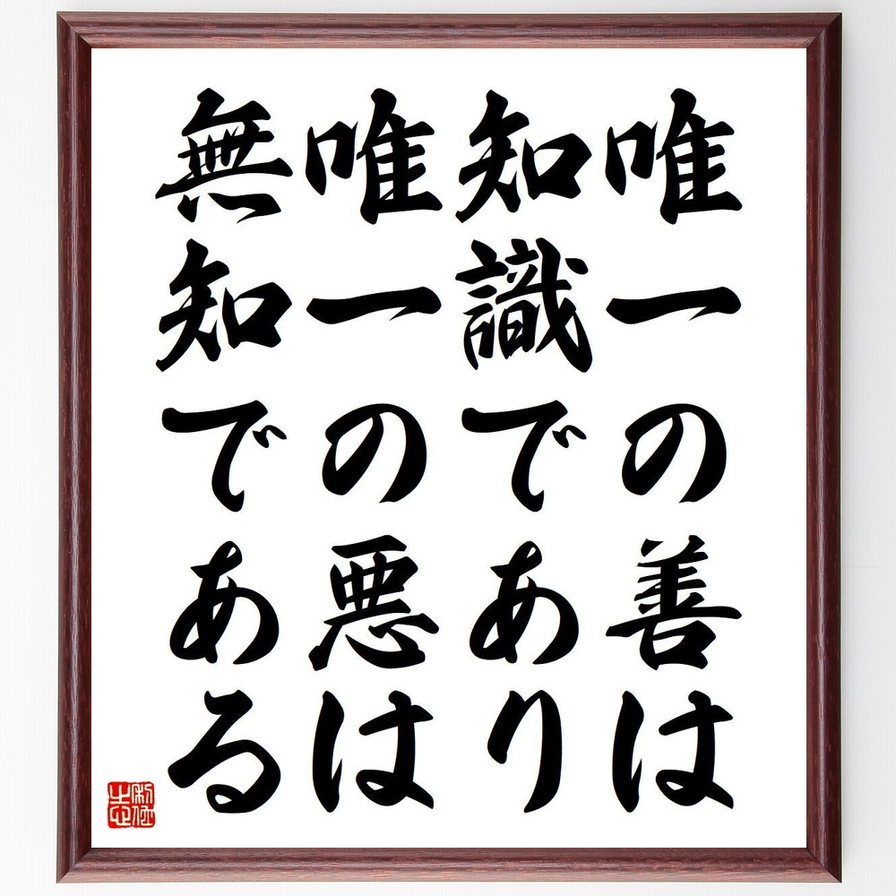 ソクラテスの名言「唯一の善は知識であり、唯一の悪は無知である」手書き書道色紙額/受注後の毛筆直筆