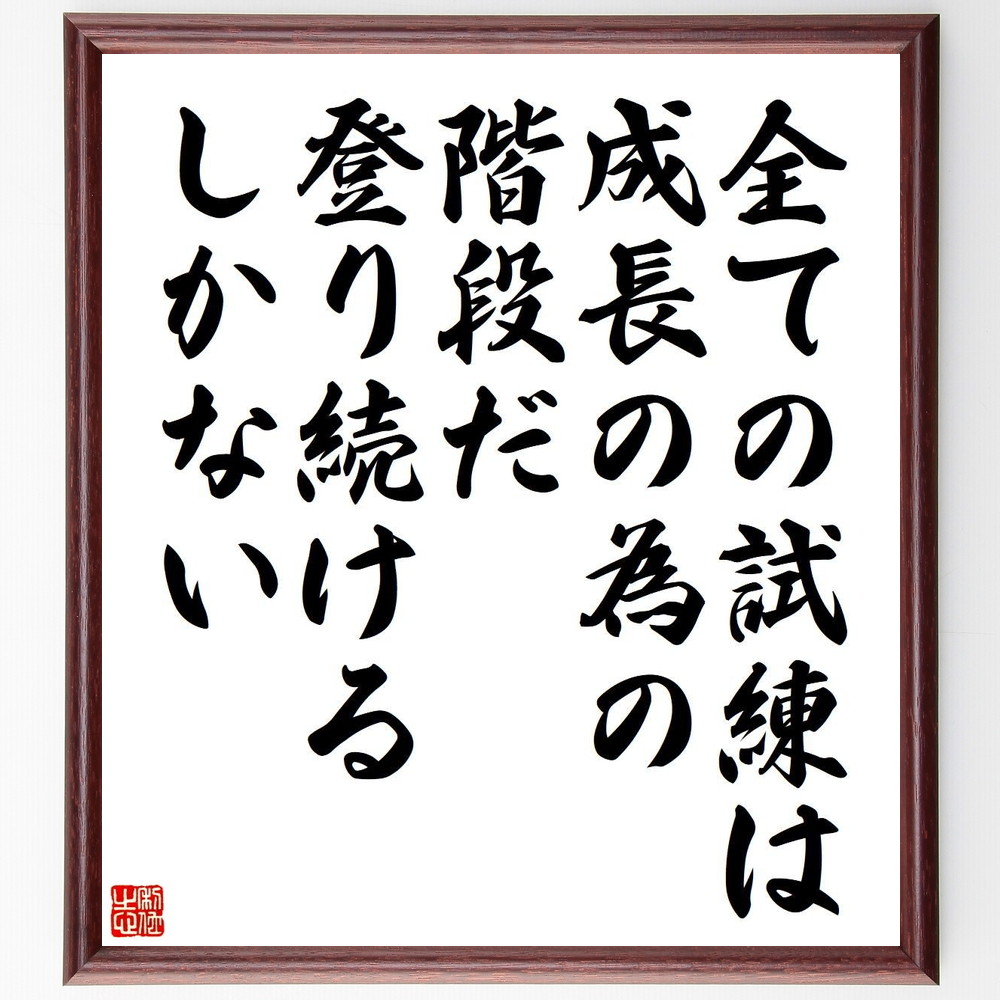 名言「全ての試練は、成長の為の階段だ、登り続けるしかない」手書き書道色紙額/受注後の毛筆直筆