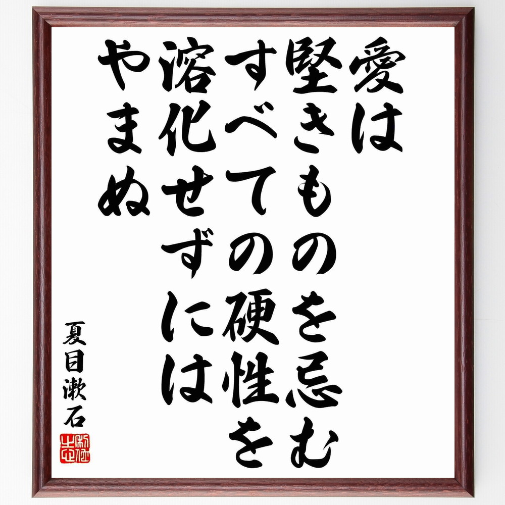 夏目漱石の名言「愛は堅きものを忌む、すべての硬性を溶化せずにはやまぬ」手書き書道色紙額/受注後の毛筆直筆