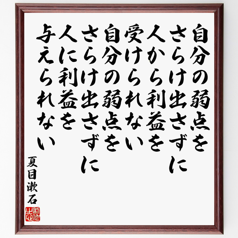 夏目漱石の名言「自分の弱点をさらけ出さずに人から利益を受けられない、自分の弱点をさらけ出さずに人に利益を与えられ〜」手書き書道色紙額/受注後の毛筆直筆