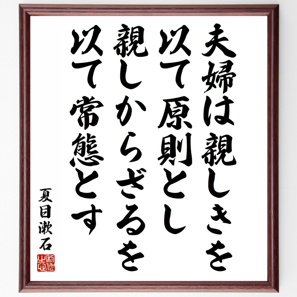 夏目漱石の名言「夫婦は親しきを以て原則とし、親しからざるを以て常態とす」手書き書道色紙額/受注後の毛筆直筆
