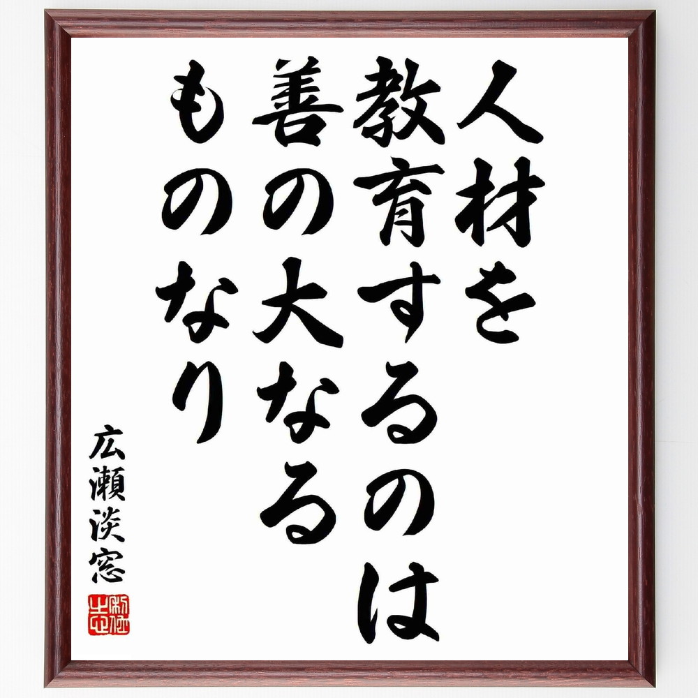 広瀬淡窓の名言「人材を教育するのは、善の大なるものなり」手書き書道色紙額/受注後の毛筆直筆
