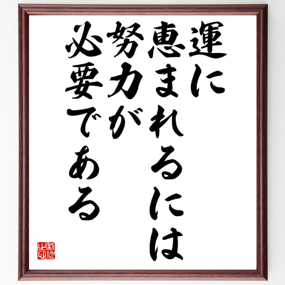 名言「運に恵まれるには努力が必要である」手書き書道色紙額/受注後の毛筆直筆