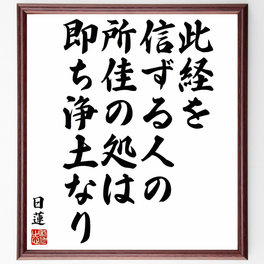 日蓮の名言「此経を信ずる人の所佳の処は、即ち浄土なり」手書き書道色紙額/受注後の毛筆直筆
