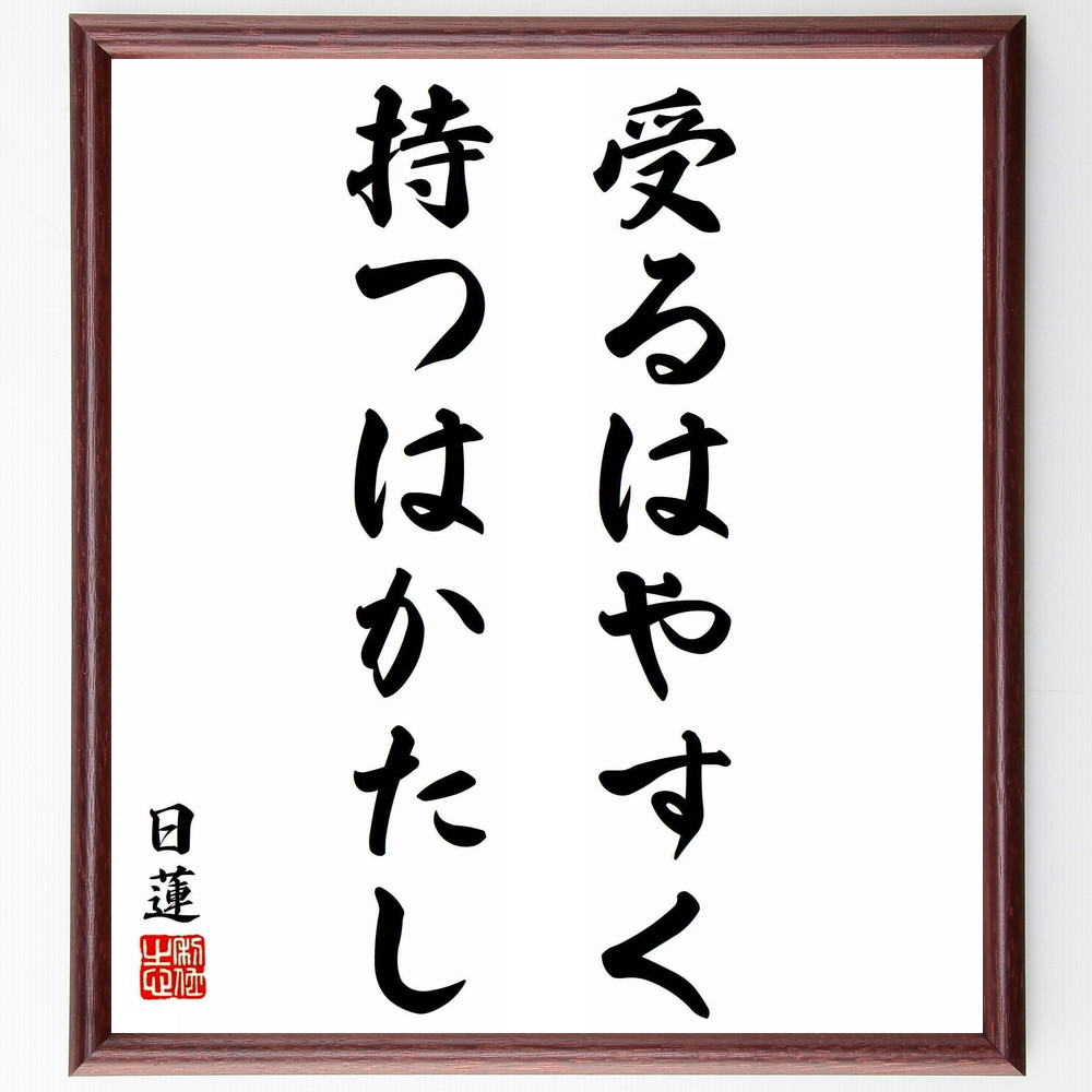 日蓮の名言「受るはやすく持つはかたし」手書き書道色紙額/受注後の毛筆直筆