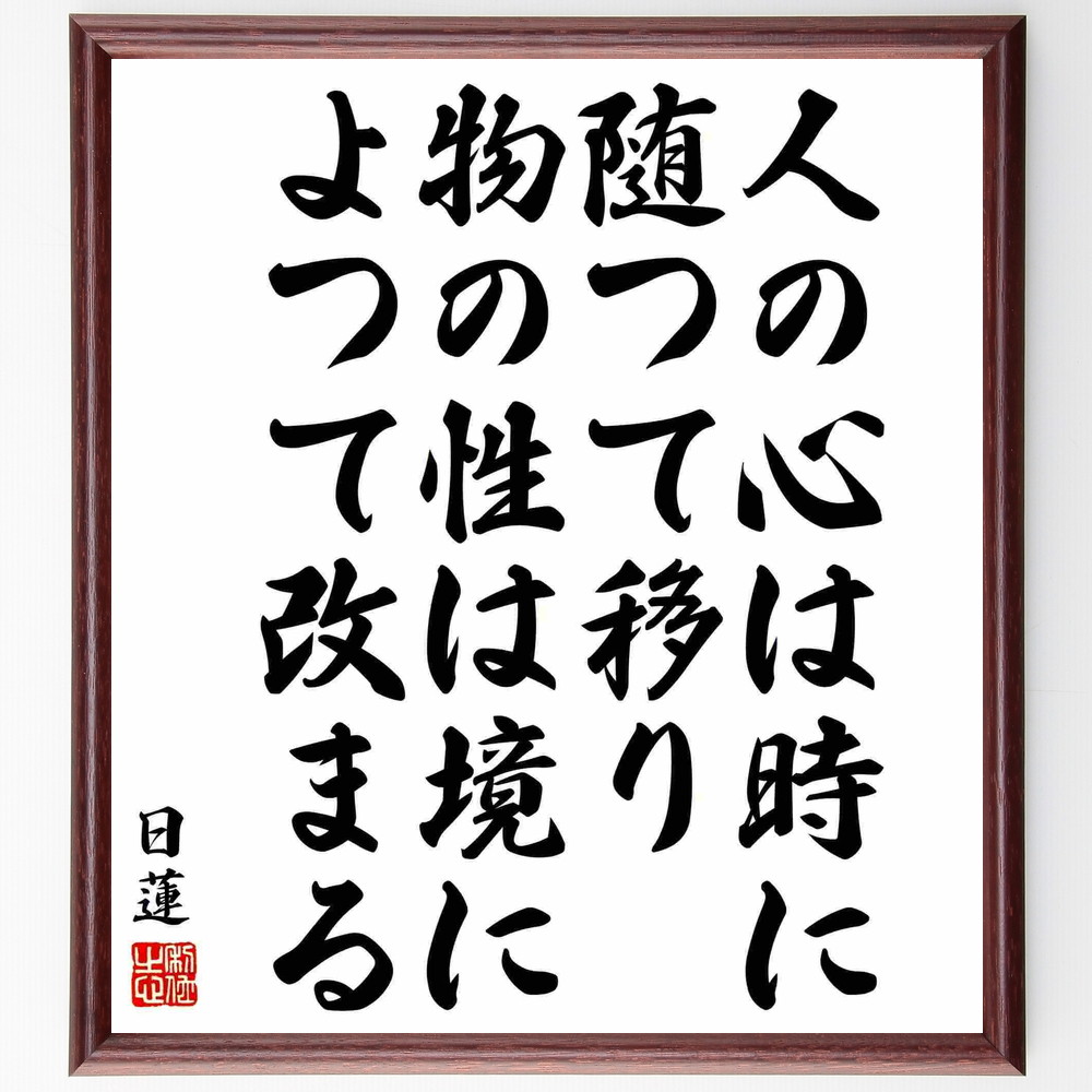 日蓮の名言「人の心は時に随つて移り、物の性は境によつて改まる」手書き書道色紙額/受注後の毛筆直筆