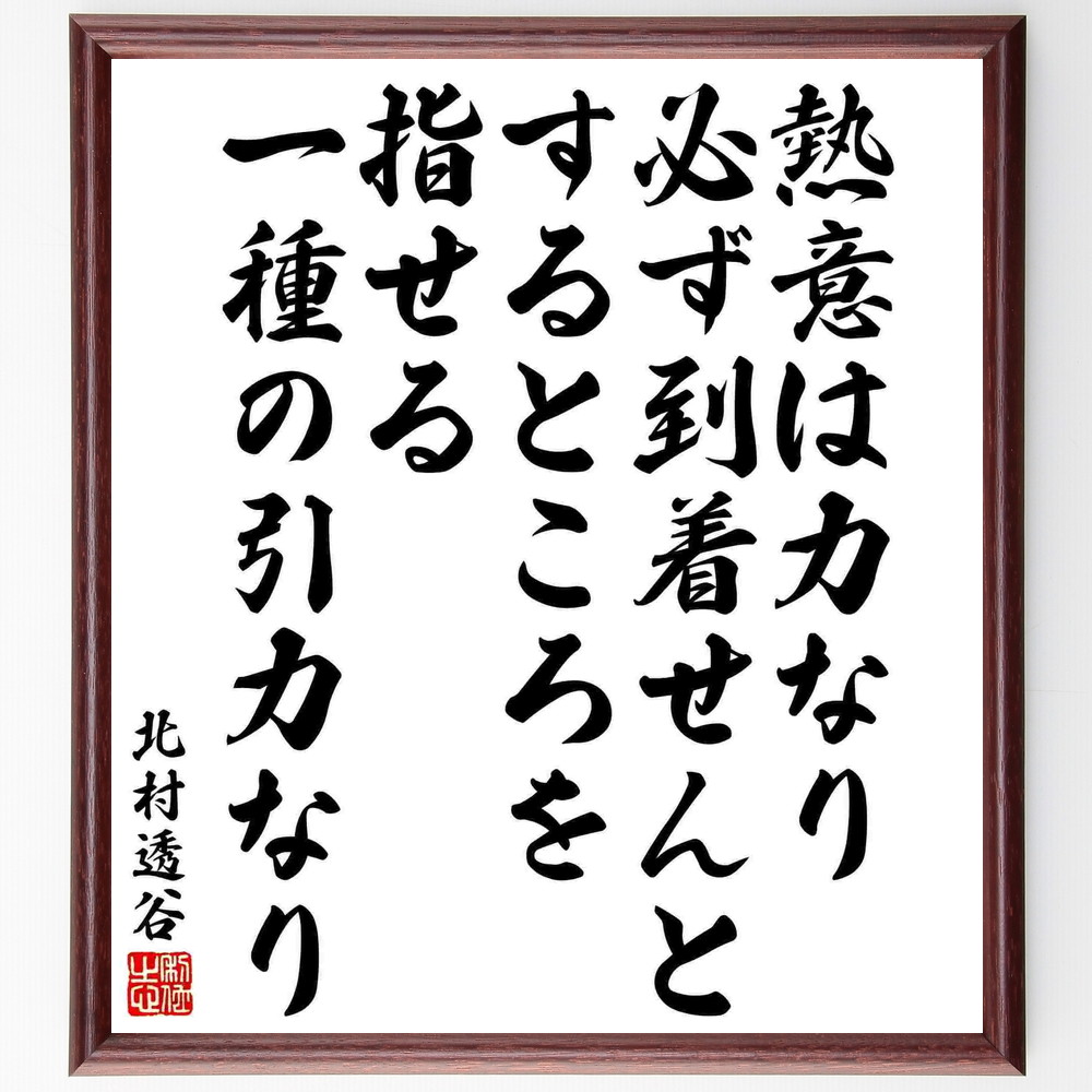 北村透谷の名言「熱意は力なり、必ず到着せんとするところを指せる、一種の引力なり」手書き書道色紙額/受注後の毛筆直筆
