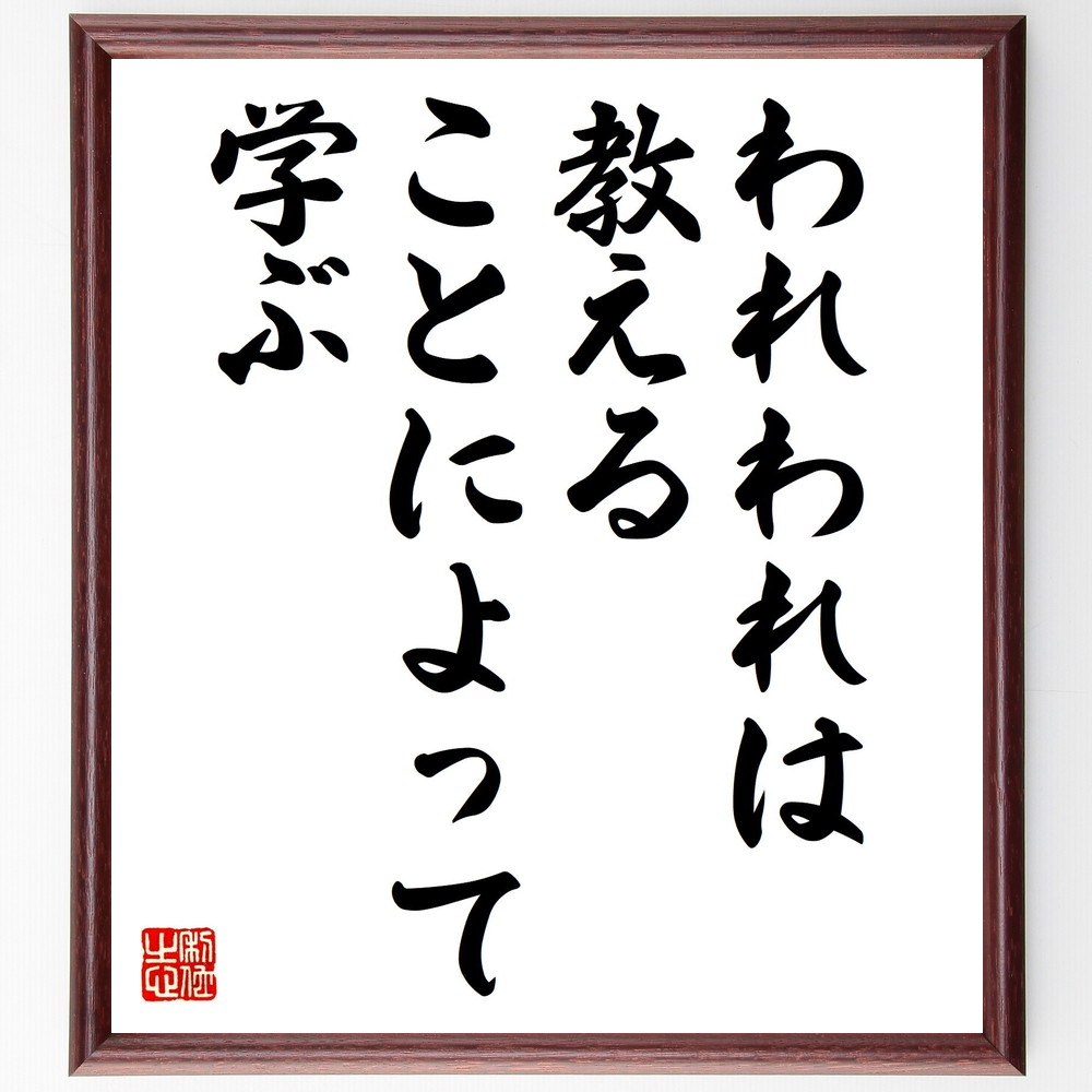 名言「われわれは、教えることによって学ぶ」手書き書道色紙額/受注後の毛筆直筆