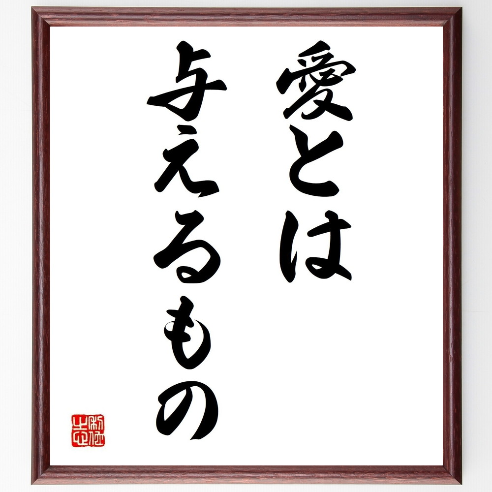 ニコラ・テスラの名言「愛とは与えるもの」を、千言堂の専属書道家が気持ちを込めて手書き直筆いたします。この言葉(ひとこと)は名言集や本・書籍などで紹介されることも多く、座右の銘にされている方も多いようです。ぜひ、ご自宅の玄関、リビング、部屋、書斎、またビジネスを営む会社のオフィスや店舗の事務所、応接室などにお飾りください。大切な方への贈り物・プレゼントにもおすすめです。一点一点が直筆のため、パソコン制作のような完璧さはございませんが、手書きの良さを感じていただけます。当店では挑戦、努力、成功、幸福、感謝、成長、家族、仕事、自己啓発など様々なテーマから人生の糧となる名言、四字熟語、諺、故事成語、格言を厳選、毛筆で直筆、お届けしています。