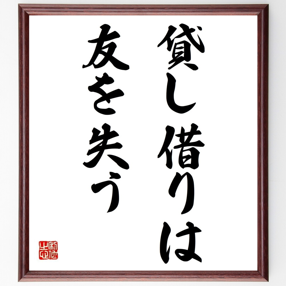 ゲーテの名言「貸し借りは、友を失う」手書き書道色紙額/受注後の毛筆直筆