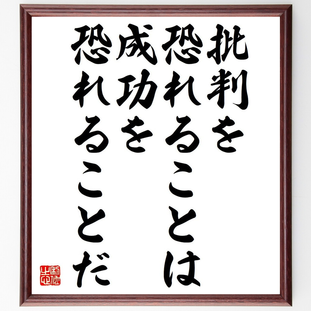 名言「批判を恐れることは、成功を恐れることだ」手書き書道色紙額/受注後の毛筆直筆