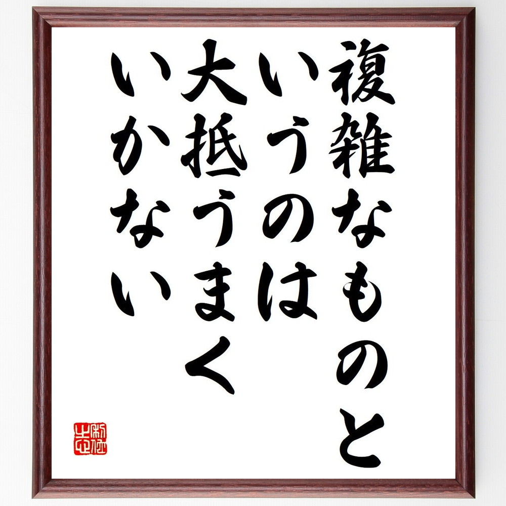 名言「複雑なものというのは、大抵うまくいかない」手書き書道色紙額/受注後の毛筆直筆