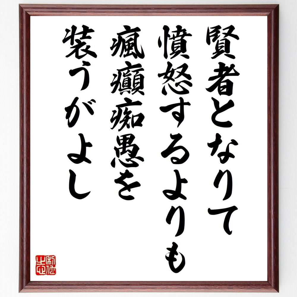 ホラティウスの名言「賢者となりて憤怒するよりも、瘋癲痴愚を装うがよし」手書き書道色紙額/受注後の毛筆直筆