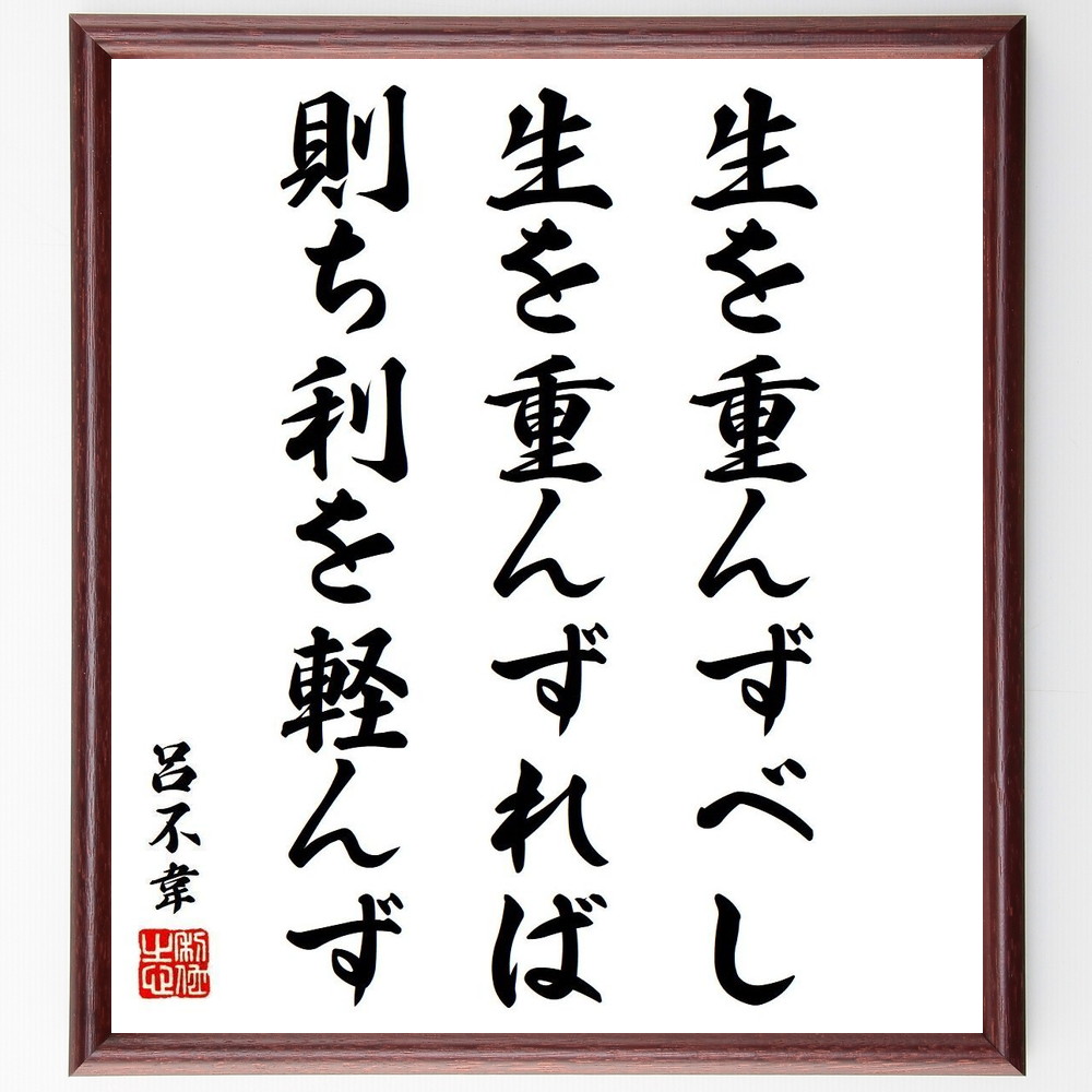 呂不韋の名言「生を重んずべし、生を重んずれば則ち利を軽んず」手書き書道色紙額/受注後の毛筆直筆