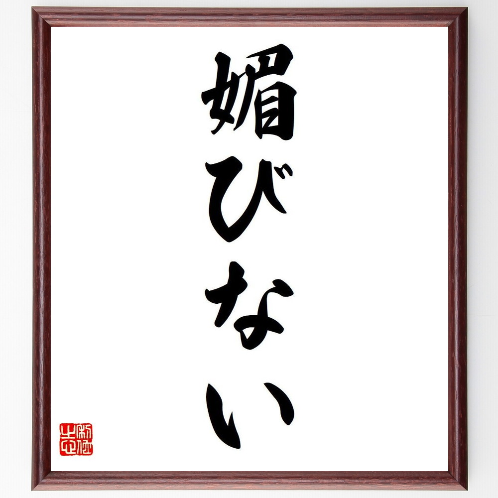 名言「媚びない」手書き書道色紙額/受注後の毛筆直筆