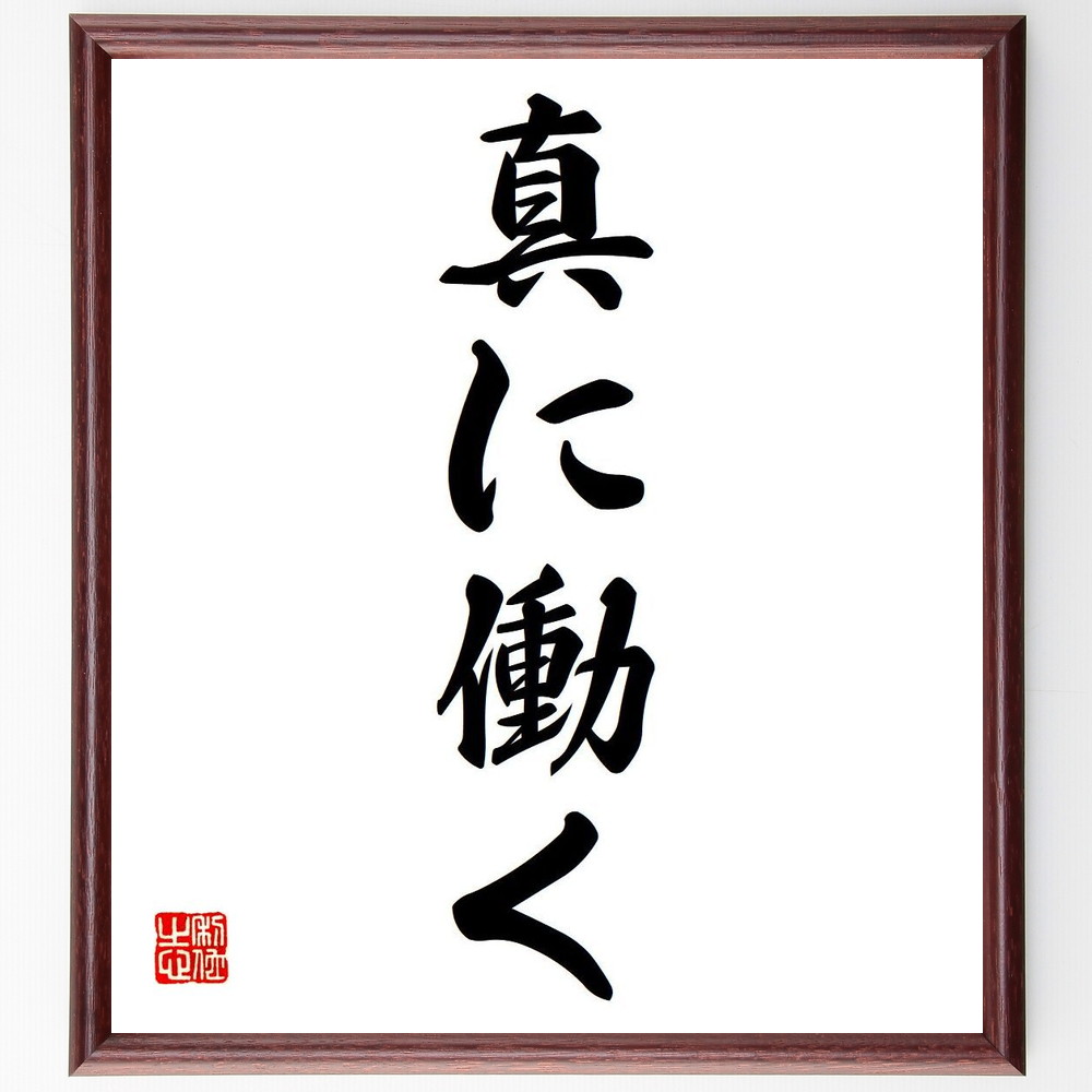 名言「真に働く」手書き書道色紙額/受注後の毛筆直筆