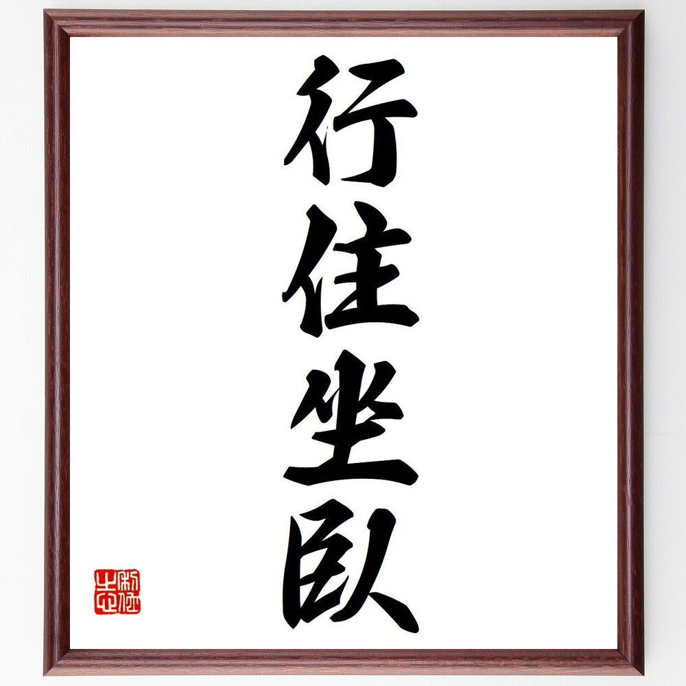 四字熟語「行住坐臥」手書き書道色紙額/受注後の毛筆直筆