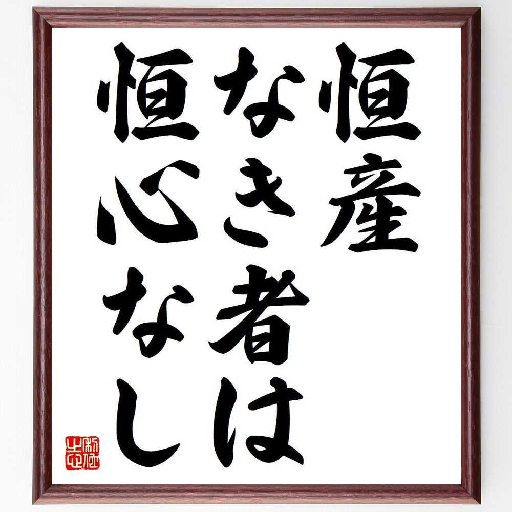 名言「恒産なき者は恒心なし」手書き書道色紙額/受注後の毛筆直筆