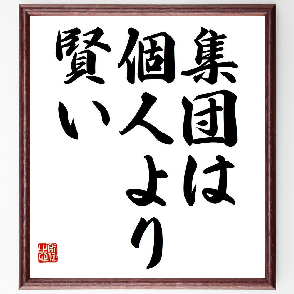 名言「集団は個人より賢い」手書き書道色紙額/受注後の毛筆直筆
