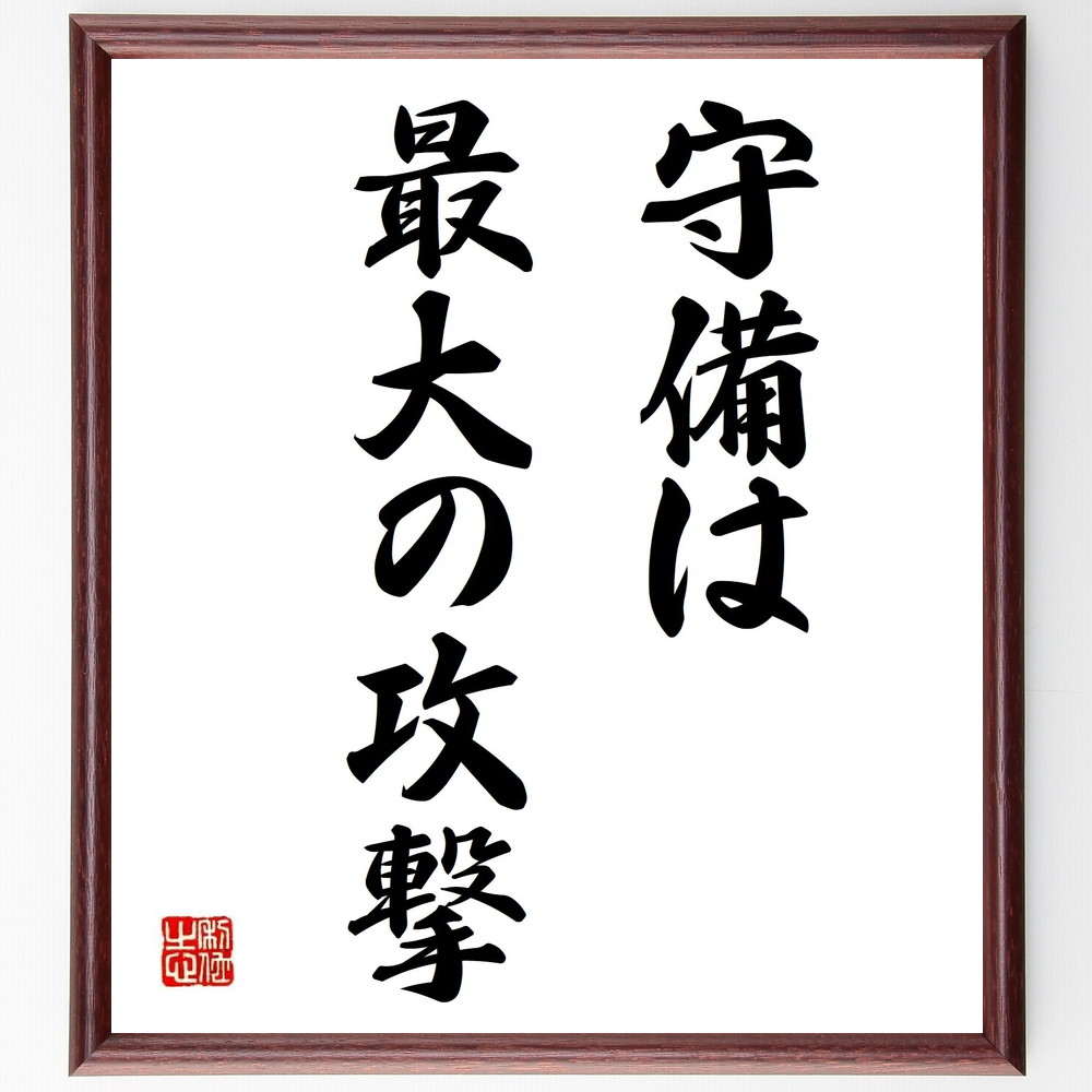 名言「守備は最大の攻撃」手書き書道色紙額/受注後の毛筆直筆