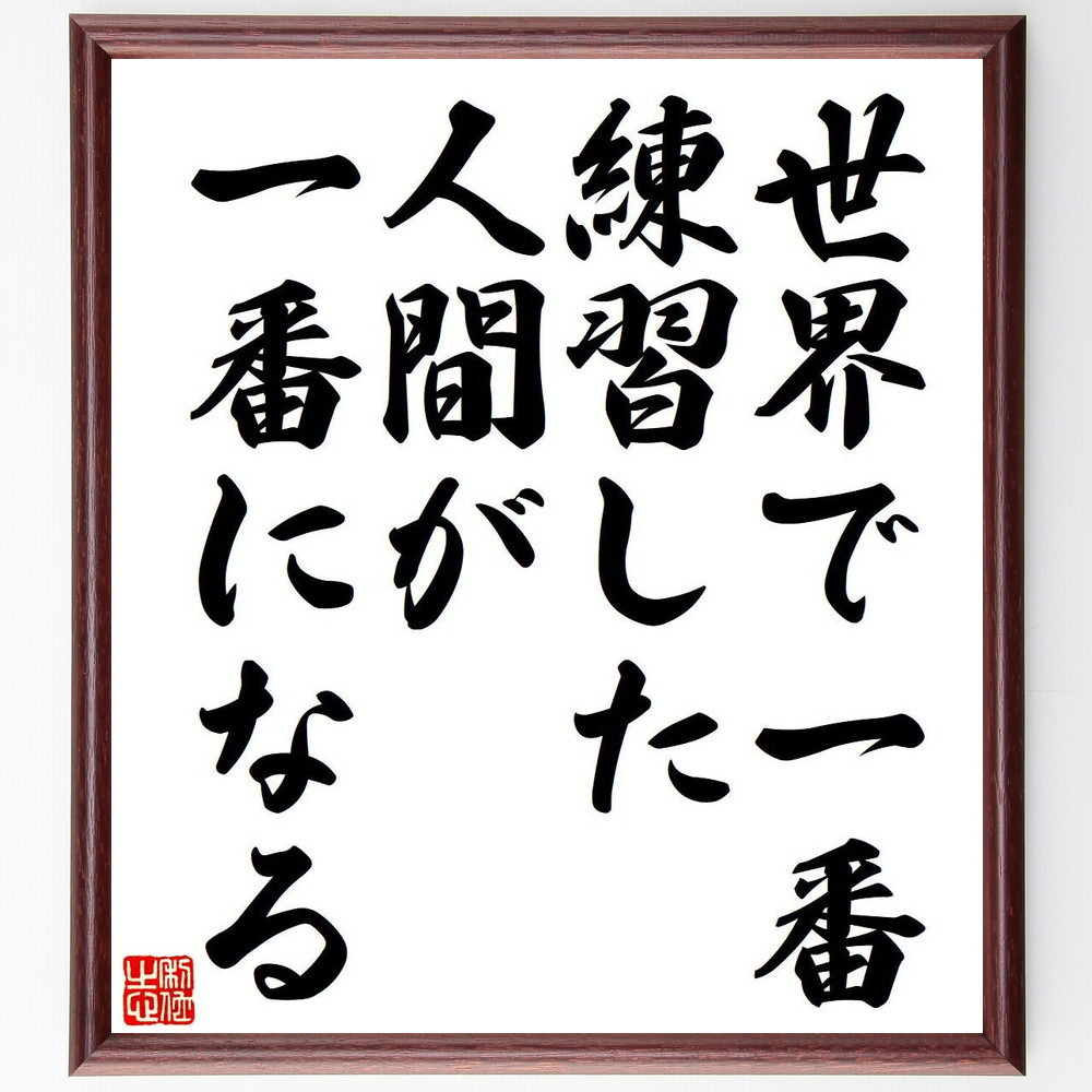 名言「世界で一番練習した人間が一番になる」手書き書道色紙額/受注後の毛筆直筆