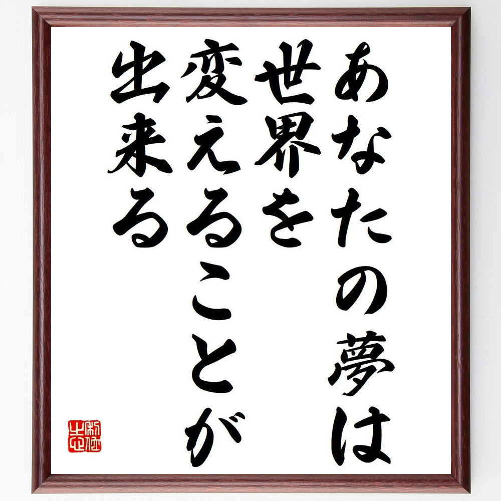 名言「あなたの夢は、世界を変えることが出来る」手書き書道色紙額/受注後の毛筆直筆