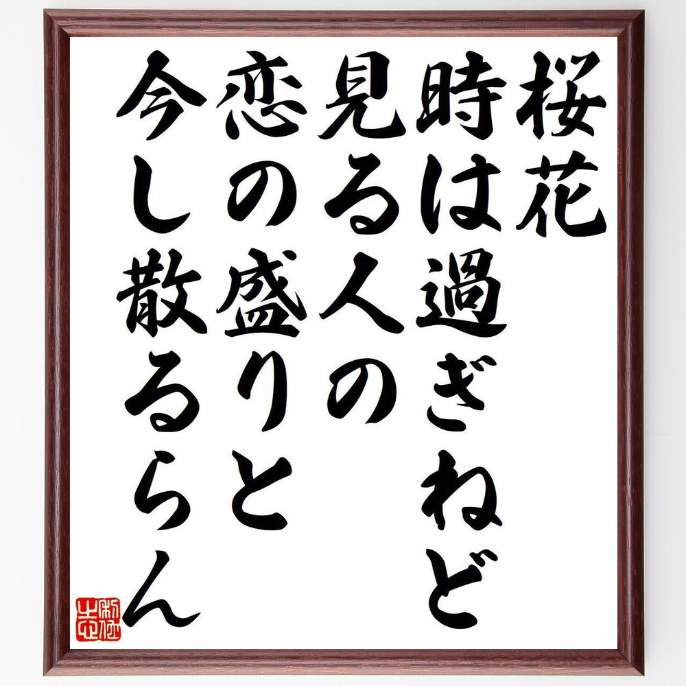 短歌・俳句「桜花、時は過ぎねど、見る人の、恋の盛りと、今し散るらん」手書き書道色紙額/受注後の毛筆直筆