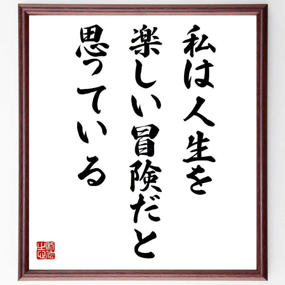 名言「私は人生を、楽しい冒険だと思っている」手書き書道色紙額/受注後の毛筆直筆