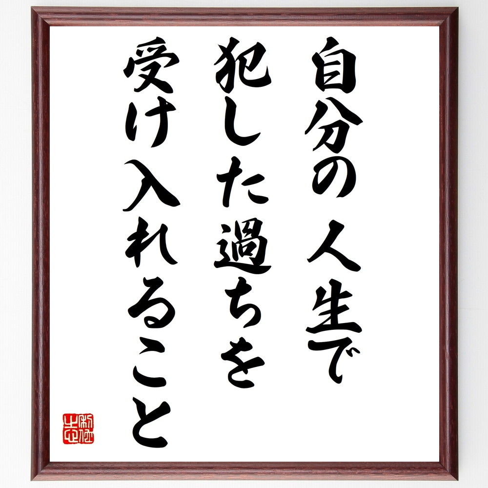 名言「自分の人生で、犯した過ちを受け入れること」手書き書道色紙額/受注後の毛筆直筆