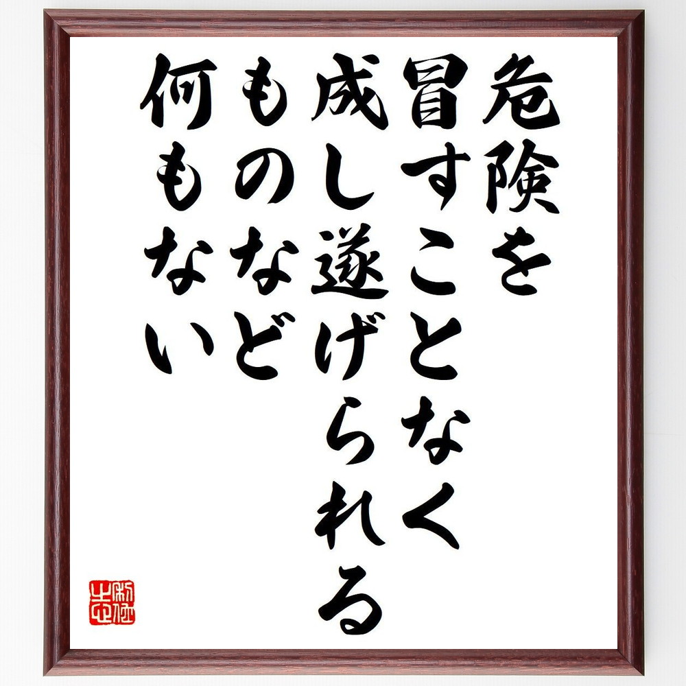 名言「危険を冒すことなく、成し遂げられるものなど何もない」手書き書道色紙額/受注後の毛筆直筆
