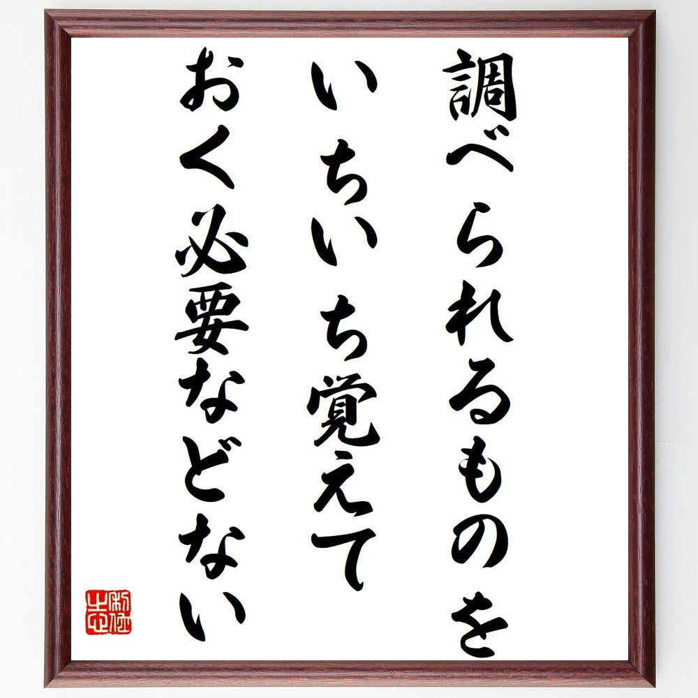 アインシュタインの名言「調べられるものを、いちいち覚えておく必要などない」手書き書道色紙額/受注後の毛筆直筆