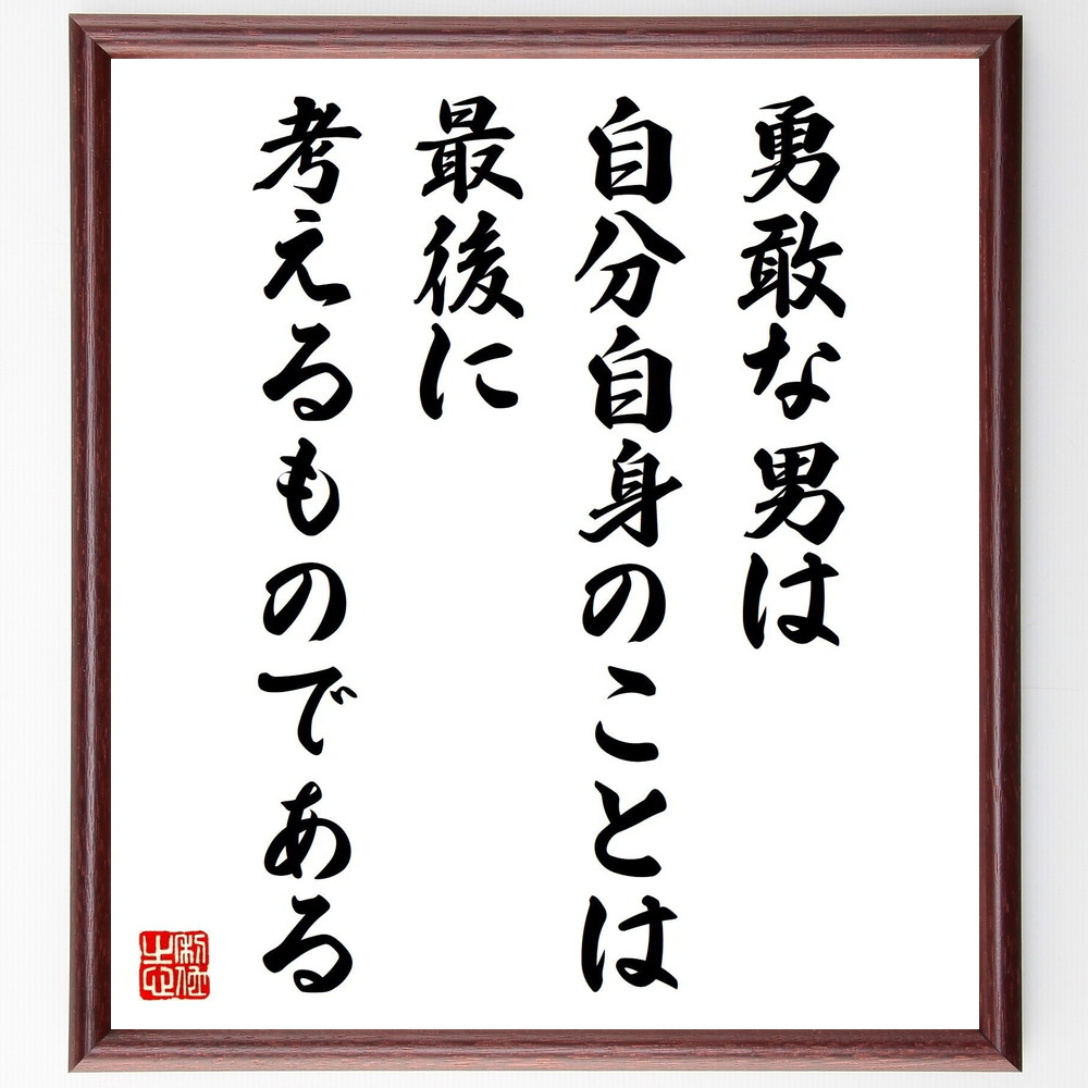シラーの名言「勇敢な男は、自分自身のことは、最後に考えるものである」手書き書道色紙額/受注後の毛筆直筆