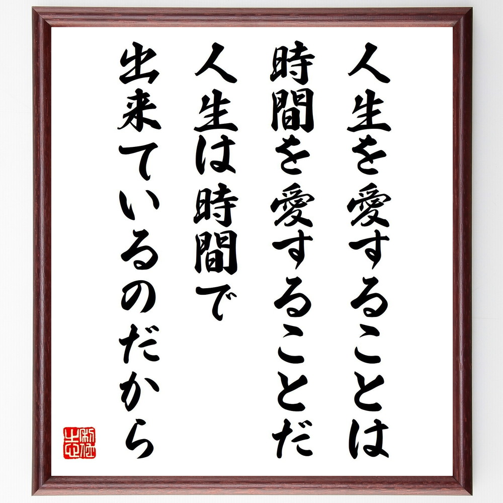 ベンジャミン・フランクリンの名言「人生を愛することは、時間を愛することだ、人生は時間で出来ているのだから」手書き書道色紙額/受注後の毛筆直筆
